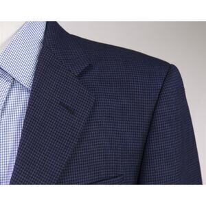 Hickey Freeman Blue Blazer Houndstooth Wool Sportcoat Jacket 40R