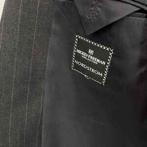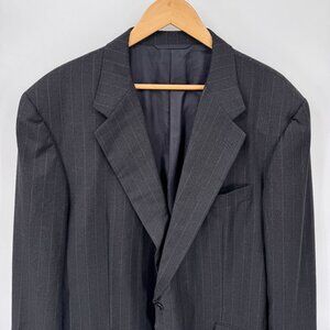 Hickey Freeman Boardroom Blazer Jacket Mens 48 Long Black Gray Pinstripe Wool