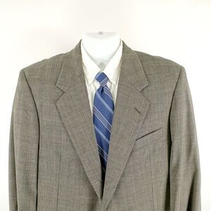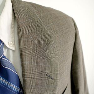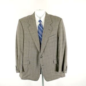 Hickey Freeman Collection Boardroom Wool Beige Glen Plaid 2 Button Blazer 42R