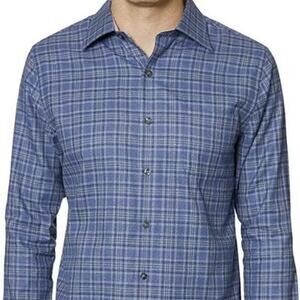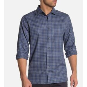 Hickey Freeman Flannel Button Down Shirt Blue Plaid Men's size Large