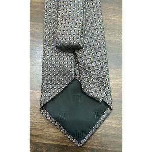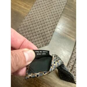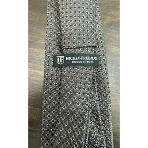 Hickey Freeman Gold Brown Geometric Pattern Silk Tie Hand Made In Italy