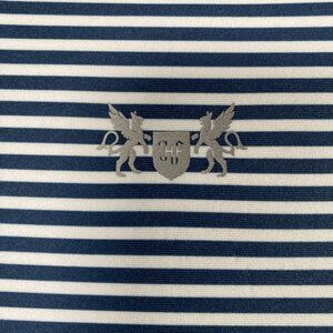 Hickey Freeman Golf Performance Polo Size L Polyester Spandex Stretch Striped