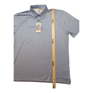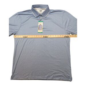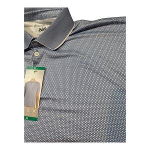 This Hickey Freeman Golf Polo Shirt in Men's XL features a stylish blue geometric print, making it perfect for a day on the golf course. Made from a blend of polyester and spandex, this short-sleeve polo offers stretch, breathability, and easy care. The collared neckline and regular fit provide comfort and style, while the brand's reputation ensures quality and performance. Ideal for any golfer looking for a fashionable and functional shirt for their game.