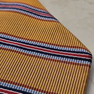 Hickey Freeman Made in USA Yellow Red Blue Repp Stripe Silk And Cotton Tie Woven