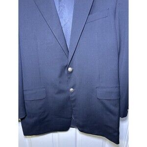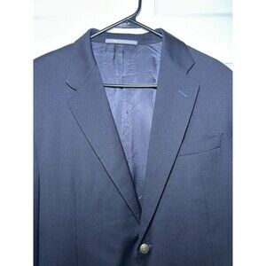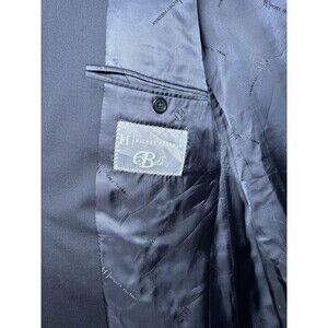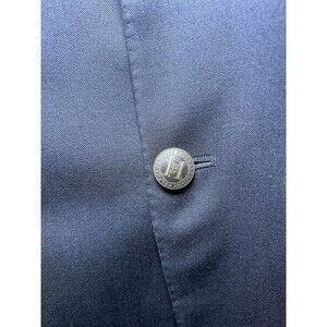 This is a Hickey Freeman Mens Madison Wool/Cashmere Sports Coat Blazer in size 44R. It is a black blazer with a solid pattern, featuring a notch lapel style, three-button sleeve button style, and single-vented jacket vent style. The blazer is designed for occasions like business, formal, or casual wear and includes inner pockets for added convenience. Made of wool and cashmere, it is recommended for dry clean only.