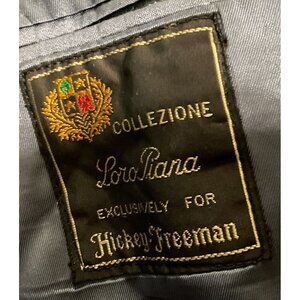 This Hickey Freeman sport coat, tailored from premium Loro Piana wool, offers elegance and comfort. The gray herringbone pattern adds a classic touch, ideal for professional settings. Its craftsmanship ensures a sophisticated fit, while the luxurious lining provides a smooth feel. A timeless addition to any wardrobe, blending style with functionality.