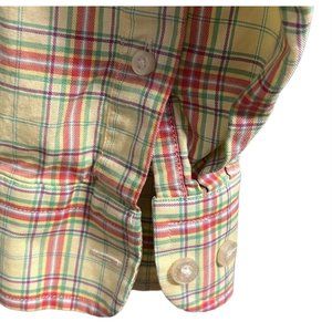 Hickey Freeman Mens Yellow Plaid Cotton Button Up Dress Shirt Sz 16.5 No defects.