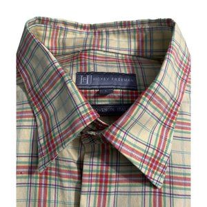 Hickey Freeman Mens Yellow Plaid Cotton Button Up Dress Shirt Sz 16.5