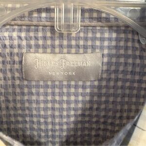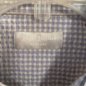 The shirt comes in a size L with a regular fit and is suitable for men of all ages. The colorful plaid pattern adds a touch of playfulness to the shirt, making it perfect for all seasons - winter, summer, fall, and spring. Get your hands on this Hickey Freeman shirt and elevate your style game!