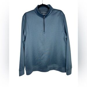 Hickey Freeman Performance Blue Striped Comfort Stretch Quarter Zip Pullover L