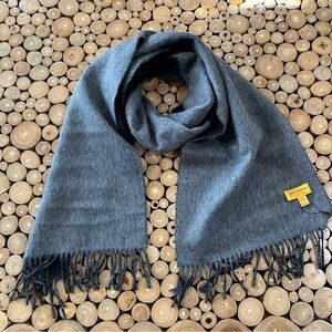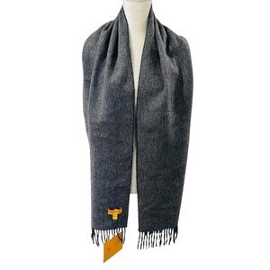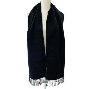 Hickey Freeman Solid Double Face Merino Wool Fringe Scarf Black/Gray Reversible