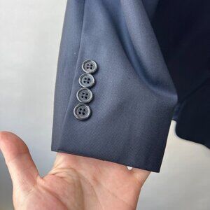 Features: notched collar, single breasted, 2 buttons closure, pockets with flaps, interior pockets, satin lined, long sleeves with 4 buttons detail, wool fabric.