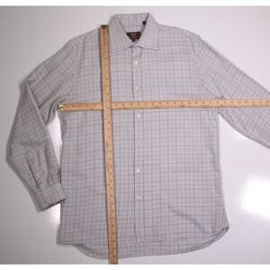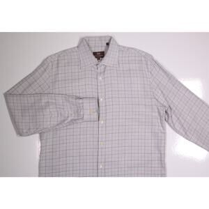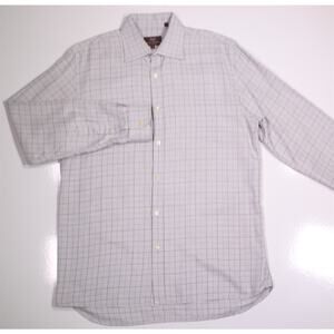 Hickey-Freeman Current Gray Gold Check Cotton Dress Shirt Medium