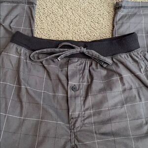 Like New! These are really soft lounge pants with a nice band at the waist and drawstring. There are pockets and a front “door”. Size is L (boys) but I looked up a men’s chart and the 27” waist and inseam fit men’s XS sizing.
