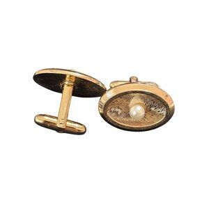 Hickok Mens Gold-Tone & Faux Pearl Oval Cufflinks U.S.A. Made