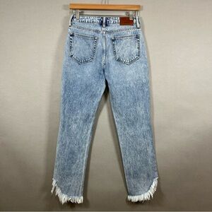 Hidden Button Fly Distressed Raw Hem Denim Jeans