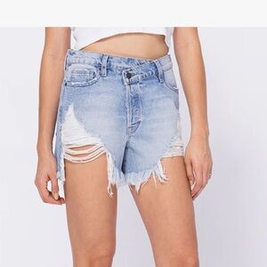 Hidden Cross Waist Jeans Shorts Denim Light Wash Frayed Size Large