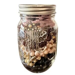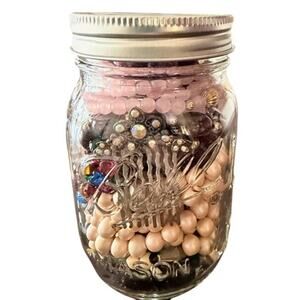 costume jewelry lot mystery jar bead lot craft jewelry bulk jewelry mason jar beads bracelets rhinestones resale lot diy jewelry making mixed jewelry assortment unsorted treasure hunt crafting supplies