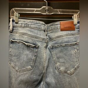 Hidden Happi Distressed Knee Crop Flare Jeans for Women