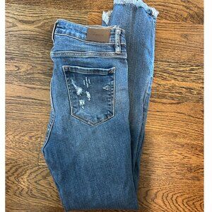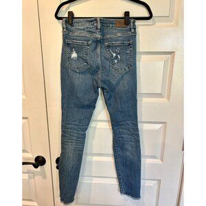 Elevate your casual look with these trendy distressed spandex and denim skinny jeans in ankle length. Good used condition