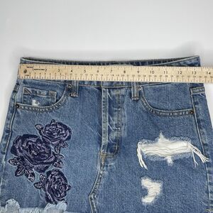 Hidden Jeans Mini Skirt Women XS Blue Floral Embroidery Distressed Denim Sexy