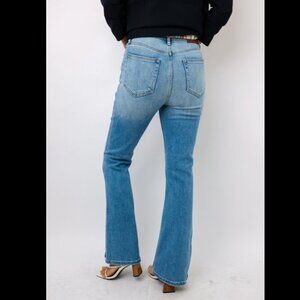 Great condition. Hidden Los Angeles. Flare jeans. Light wash. High rise. Style HD3131-M. Size 24. Stretch 93% cotton, 5% polyester, 2% spandex. Waist 11.5” Inseam 28” Front Rise 10.5”. All measurements are approximate and taken lying flat. Smoke free home. No trades, offers welcome.