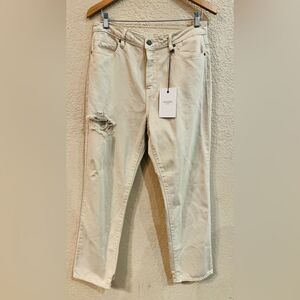 Hidden Straight Leg Jeans Sz 31 Distressed Button Fly Cream Colored NWT