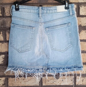 great condition denim skirt with frayed bottom hem. size small by Hidden Jeans.