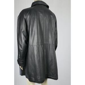 Hide Society Black Genuine Leather Reversible Button Down Coat Jacket Size 12