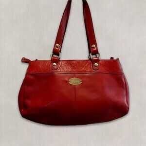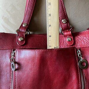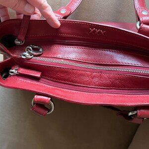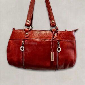 Hidesign East West Shoulder Bag Leather 3 Zip-Top Gusseted Pockets Marsala