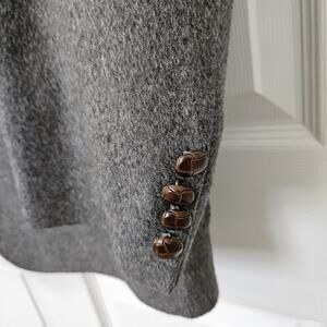 This sport coat suit jacket is ideal for fall and winter seasons and has a single vented jacket vent style. It also boasts leather-covered buttons and inner pockets, adding practicality and sophistication to its features. The jacket sleeve button style is four-button and its lining material is 100% polyester. Care instructions dictate that it should be dry-cleaned only.
