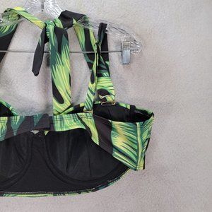 High Dive ModCloth Green Leaf Tropical Halter Retro Style Swim Top Swimwear