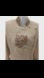 The soft beige body provides a neutral base that beautifully complements the leopard print collar and cuffs, each highlighted with gold-tone studs and sparkling crystal accents for a touch of luxury. The asymmetrical button closure gives the piece a modern, structured silhouette that flatters the figure while maintaining vintage flair.