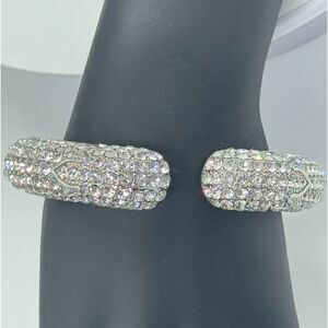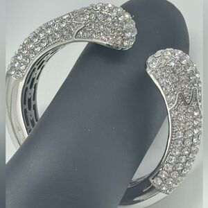 High End Department Store Designer Kissable Hinged Cuff Bracelet with Pave Cz in Silver