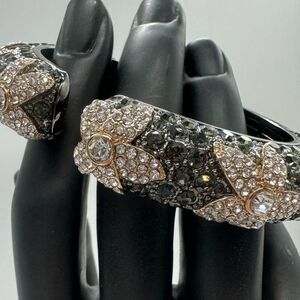 High End Department Store Designer Kissable Hinged Cuff Bracelet with Pave Cz in Gunmetal