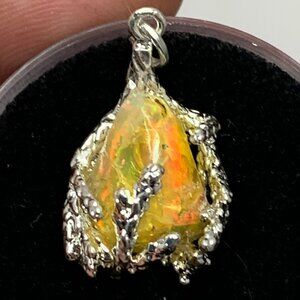 This VIBRANT Fire opal nugget comes from the Kodúr Mines located along the Bay of Bengal. It has extraordinary clarity for an opal and especially a fire opal.