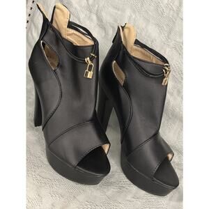 High Heel Black Booties Size 6.5/7 Peep Toe ,Zipper Back , Ankle Band W/lock