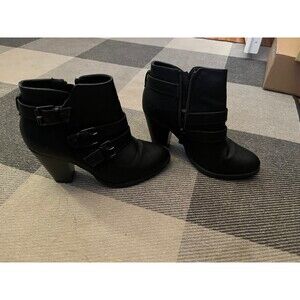 Black high heel buckle booties, 3.5” heel. Great used condition.