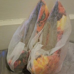 Red multi colored patent leather heels, never worn, only tried on once. Box is crushed, so it will not be included. Dust covers, tissue and stems are included. Shoes are in excellent condition. 5 inch heel 1.5 inch platform.