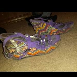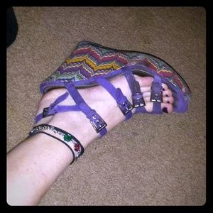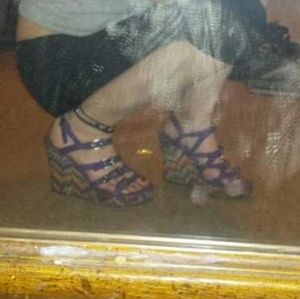 They're purple, and colorful. If you've ever seen the movie Lottery Ticket with Bow Wow, one of Nikkis friends is wearing the exact same shoes.