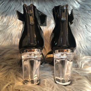 Super cute patent leather ankle straps! Fabulous for jeans, dresses or skirts. Sexy clear heel with back zipper. These beauties have never been worn and come from a smoke free home. I do not have the original box. Just waiting on a new home!