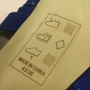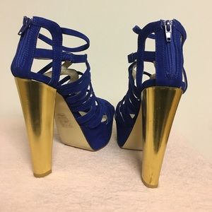 Bold blue suede and gold heel