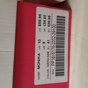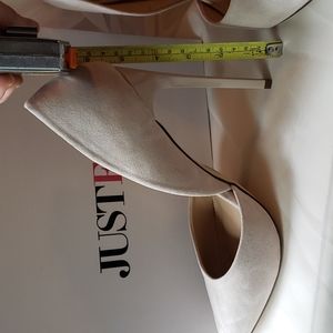 Nude color, faux suede, very fashionable! Can pair with a lot of outfits. 4" heels, cutout on sides. Never been worn before!!