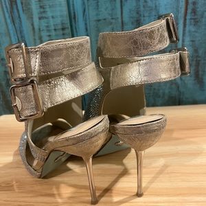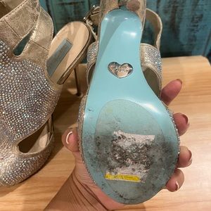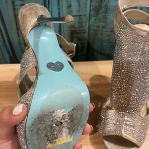 Gorgeous Betsy Johnson High Heels! Only worn twice! In great condition. Missing just one stone as shown in the last photo, barely noticeable. Minor peeling on inside of strap where you buckle.