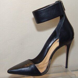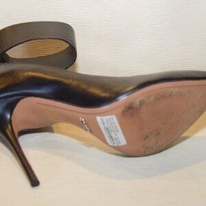 Worn twice for short time are my Schutz Ankle strap leather heels . Wide ankle strap with rear zipper . Very slim stiletto heel.The smell of rich leathers still there ...