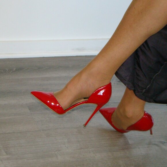 From Aqua are these Leather sexy pumps . Red Patent leather with tall slim stiletto heel . Sz 9M worn twice with normal wear . Nice !...