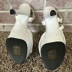 These heels will elevate your wardrobe to new heights! Soft insole is “linty” and there are scuffs to the bottom of the heels (shown in photo).