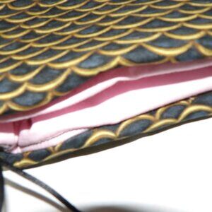 Crafted from cotton fabric, and it is fully lined with baby pink cotton fabric, and it has a black silk cord for hanging.