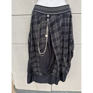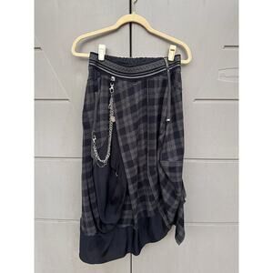 High Knit Claire Campbell wool Asymmetric Draped Kilt Skirt Sz 6 Tartan Grey