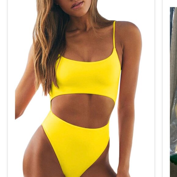 High Leg One piece Swimsuit Backless - Yellow Size L